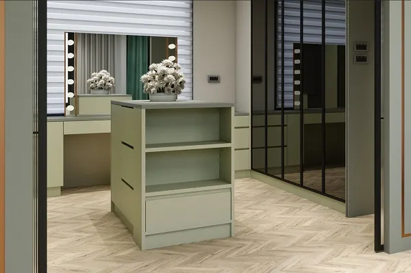海灣綠色系的更衣室放大收納機能