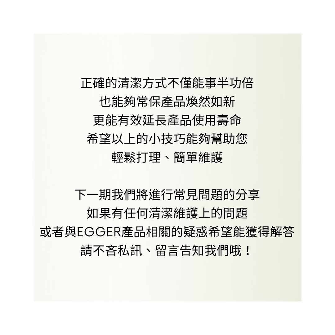 清潔 ▍EGGER清潔指南